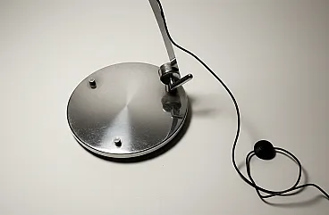 Base: A heavy circular metal base provides the counterweight necessary to keep the long arm stable.