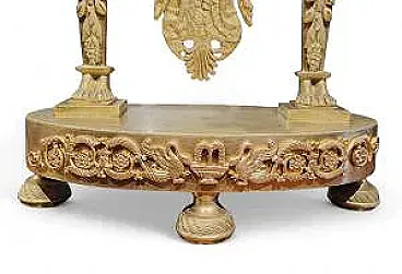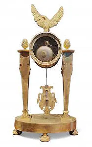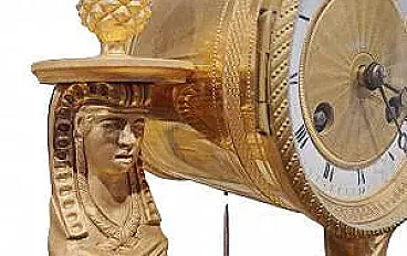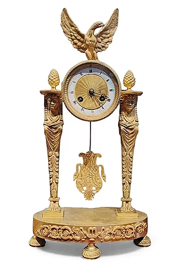 Structure: Two lateral uprights in the shape of Egyptian caryatids support the circular case.