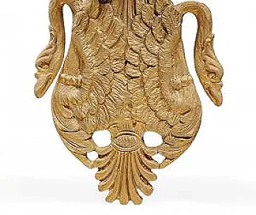 Decorations: The uprights are enriched with top pine cones, fruit festoons and acanthus leaves. The elliptical base features a bas-relief frieze with swans drinking from a fountain, enclosed within floral scrolls.