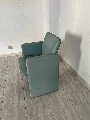 Rarity: It is extremely difficult to find a complete set of 6 units in the same color and state of conservation on the vintage market. The light blue color offers a bright and contemporary variation compared to the classic dark tones, making the set an iconic and timeless piece of furniture.