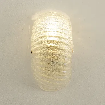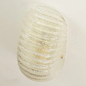 Murano glass shell wall sconce with brass structure, Made in Italy wall lamp.