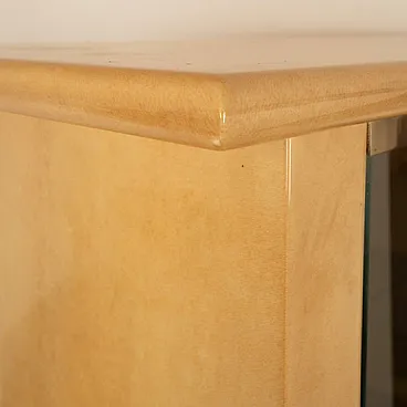 The top, also clad in parchment, is resolved with a clean design and perfectly calibrated proportions, lending the entire composition a sense of balance and monumental solidity.