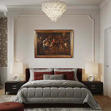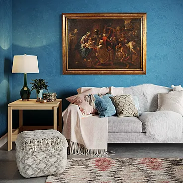 The shadows are warm, brown, and interact with a palette enriched by deep reds and golden ochres, creating a collected and solemn atmosphere. A work capable of combining historical value, narrative strength and scenic presence, perfect for collectors sensitive to baroque sacred painting. Ideal for refined, traditional or contemporary environments, a painting capable of communicating with classic and eclectic furnishings.