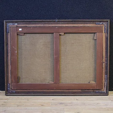 Large 20th century frame in carved and gilded wood, beautifully decorated, with some signs of aging. Painting already restored with relining, replacement of the frame and color recovery in small spots, overall in a good state of conservation. Painting light H 85 x W 125 cm.