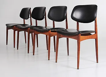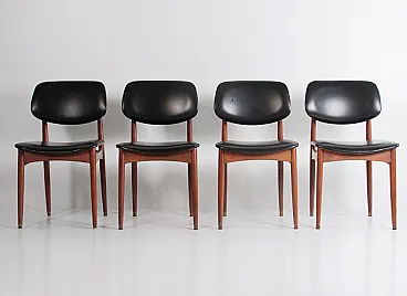 4 Wood and leather chairs, 1960s