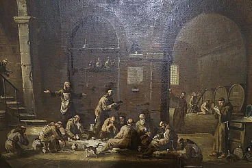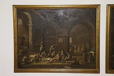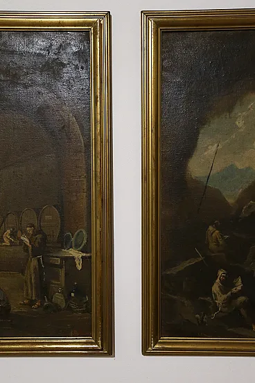 Scenes with monks, pair of oil paintings on canvas, 19th century