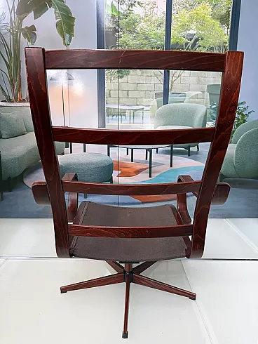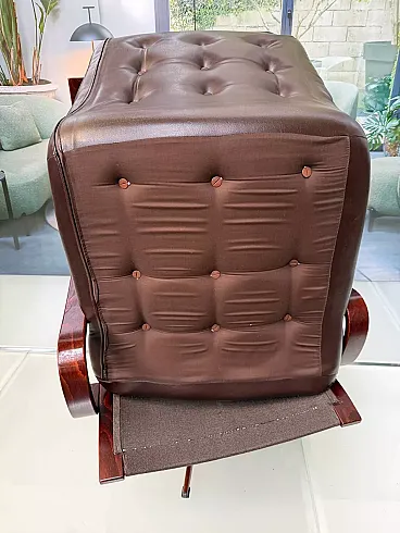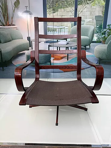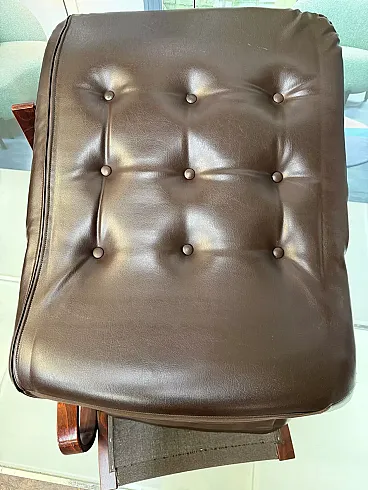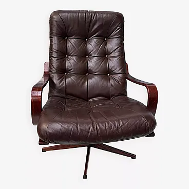 Beautiful Scandinavian brown leather armchair on a wooden frame with wood-effect metal legs, exquisitely crafted, with a simple, clean, and effective design. In excellent condition. Dimensions: Width 66 cm, Depth 93 cm, Seat height 39 cm, Total height 95 cm.