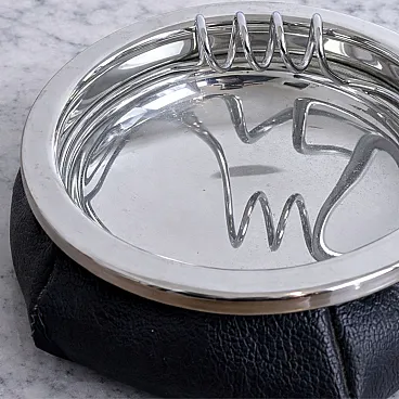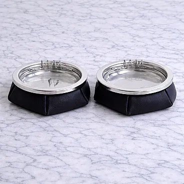 Conceived as both functional and decorative objects, these ashtrays reflect the era's emphasis on tactile materials, balanced proportions, and understated luxury. The combination of supple leather and metal gives the pieces a timeless presence, making them suitable for placement on a desk, coffee table, or side table within a curated interior.