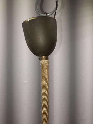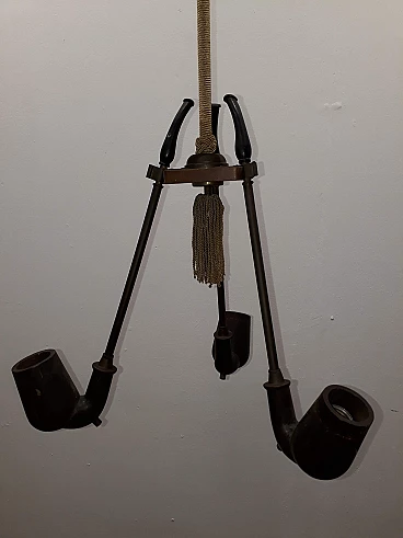 A unique chandelier that is reminiscent of the works of Aldo Ture. With 3 smoking pipes light holder and cord support.