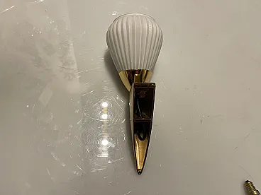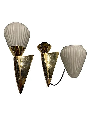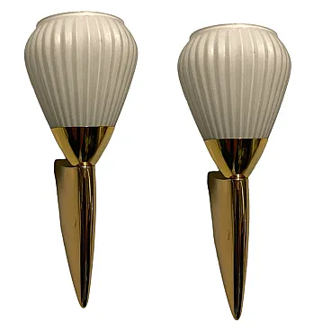 Pair of pleated brass wall light in opaline glass, 1980s