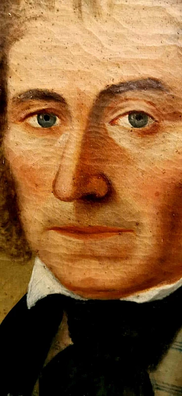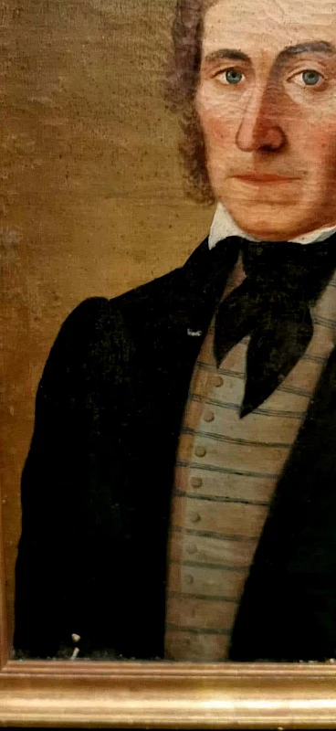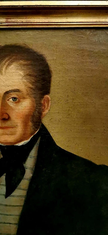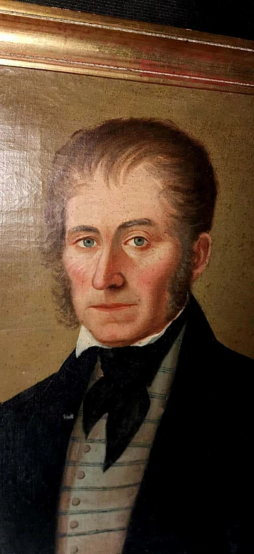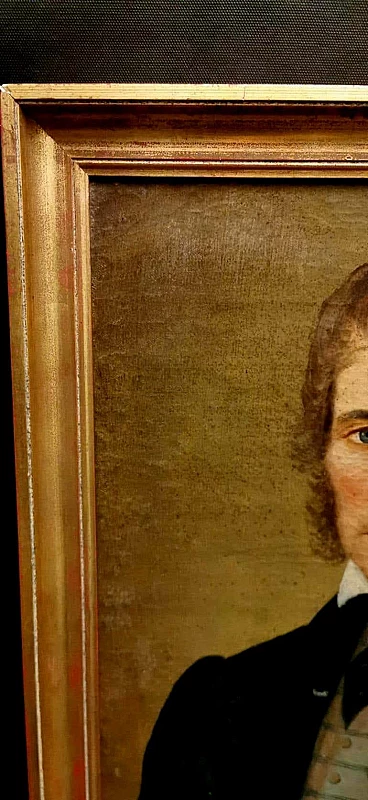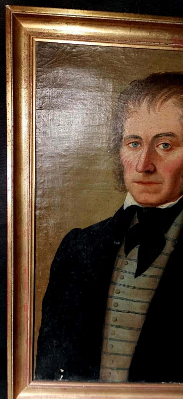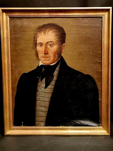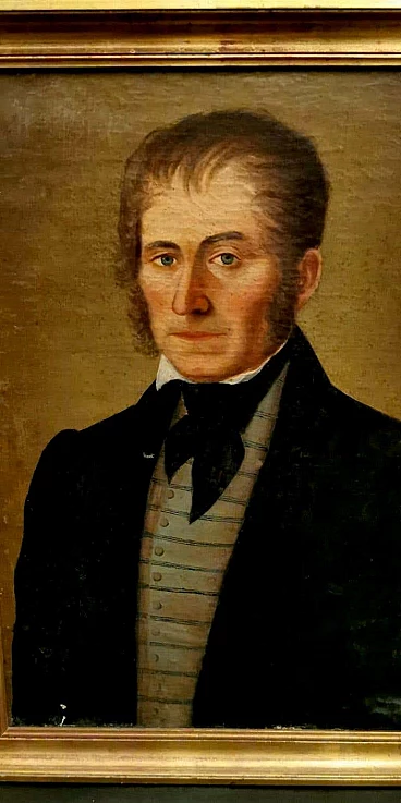 Painting mid-19th century, oil on canvas. The subject of the painting is an unknown French nobleman, dressed in an elegant and sober suit. The look expresses security and stateliness, severity and pride, he must surely have been a singular and aristocratic character and the artist, in his work, interpreted with sensitivity all the inner and human characteristics. We are not able to give any news about the author, but we confirm his extraordinary aesthetics and ability. Performed in France between 1850 and 1855. The gilded wooden frame is of the period, it is very linear and of good proportions to enhance a portrait. The painting is of beautiful size and pleasant impact, excellent workmanship and entirely in its original state. It presents some inevitable signs of time (see photo), but these signs testify to its authenticity and make it even more fascinating and engaging, on the whole, a work ready to hang.