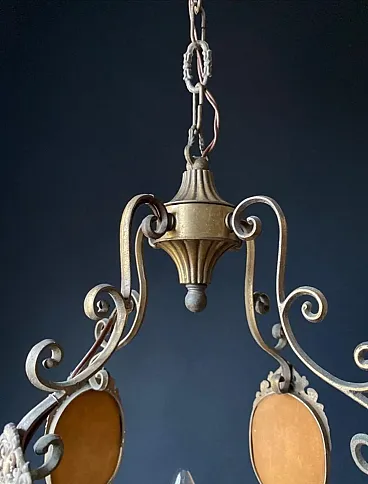 Chandelier with 4 light points. In working condition. The lamp holders have been replaced with new ones, but in a vintage style in the form of candles. Bulb type E14. Suitable for 220V or 110V electrical system.