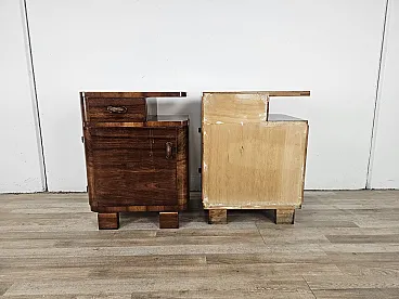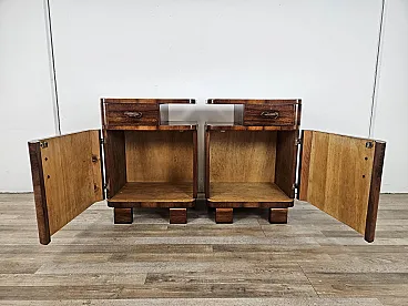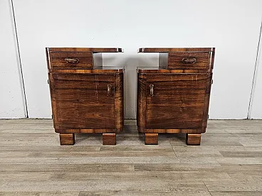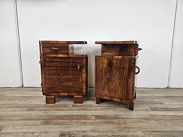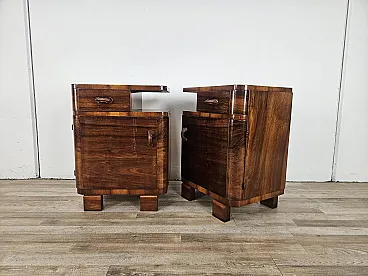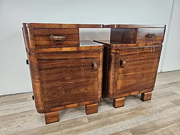 Art Deco pair of bedside tables in walnut root, mid-20th century