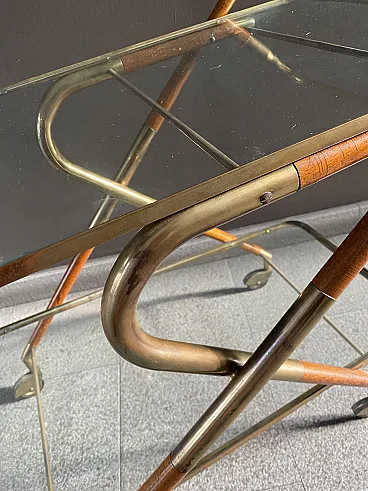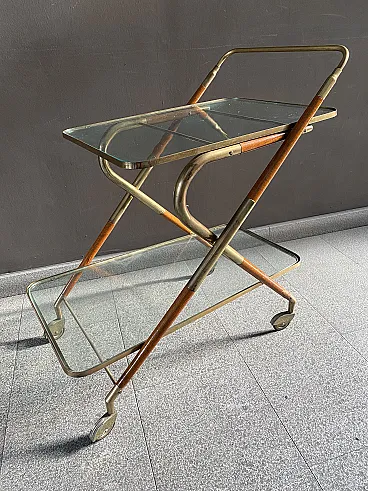 Food cart by Cesare Lacca in brass and wood, late 20th century