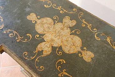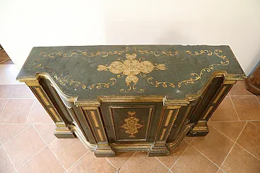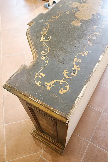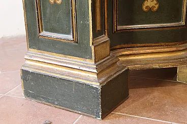 Made of soft wood, the piece of furniture is richly decorated, lacquered, gilded and chiseled entirely by hand.