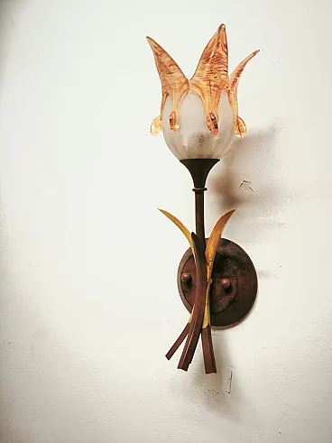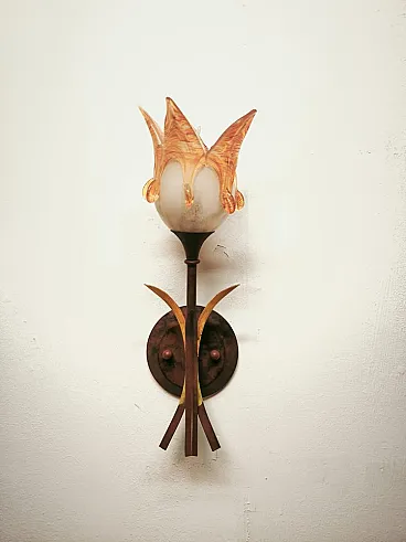 Iron wall lamp with Murano glass shade, 1980s