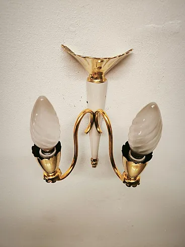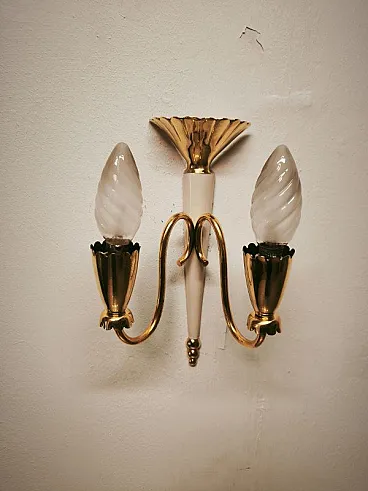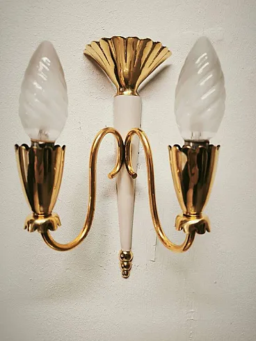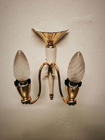 Brass double-light wall lamp, 1950s