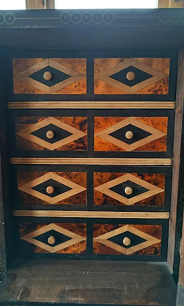Rosewood and walnut burl cabinet with bronze inlays, 20th century