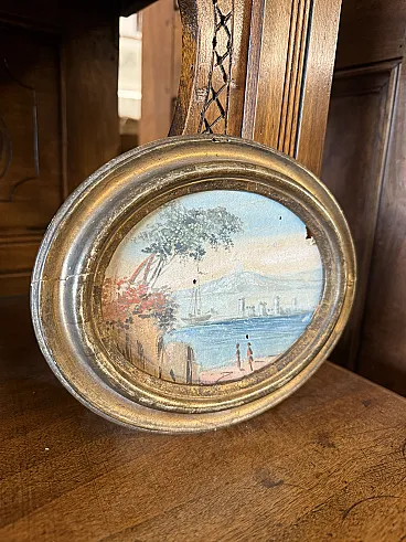 Painting on oval paper depicting seascape, 17th century