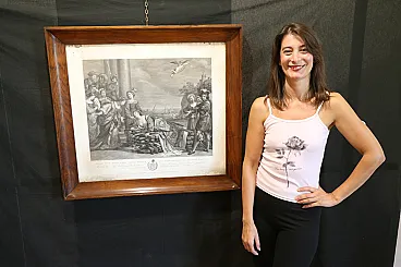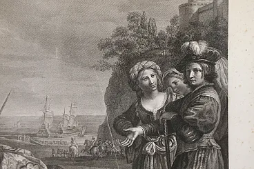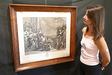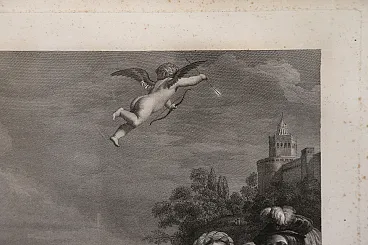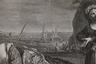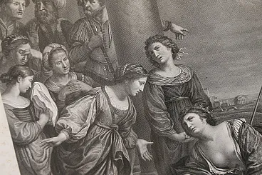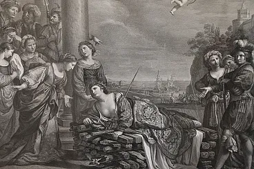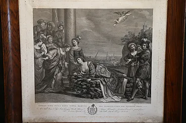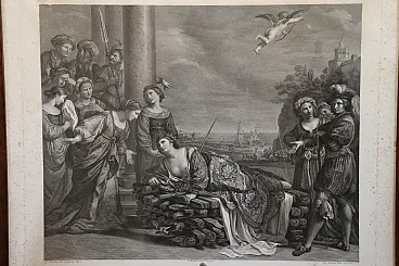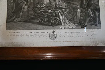 The engraving, drawn by the Tyrolean painter Kock Michael (Innsbruk 1760 - Rome 1825) depicts the suicide of Dido and is the pair of the famous painting by Giovanni Francesco Barbieri known as Guercino (Cento 1591 - Bologna 1666) preserved in the Spada gallery in Rome and entitled: "Death of Dido".