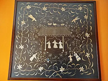 Japanese embroidered silk tapestry, 20th century