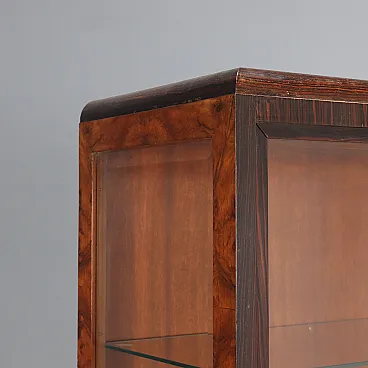 Walnut burl, exotic woods and metal display case, 20th century
