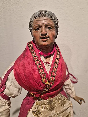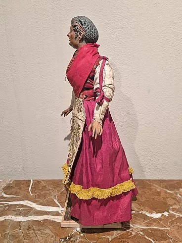 Housewife ativity scene statue in terracotta, glass, polychrome fabric