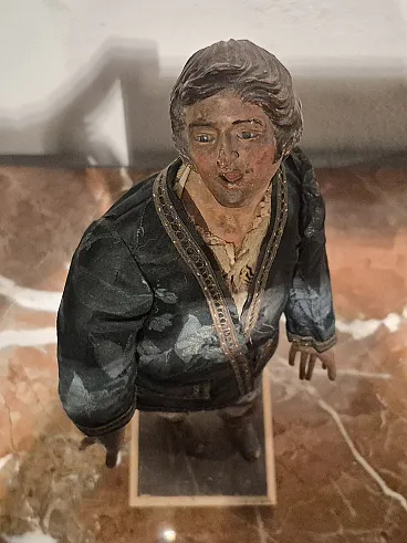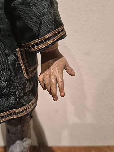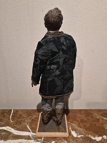 Shepherd ativity scene statue in terracotta, glass, polychrome fabric
