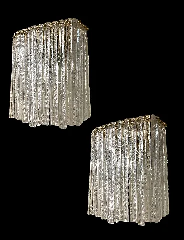 Pair of Murano glass and brass wall lights, 1980s