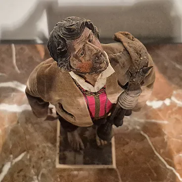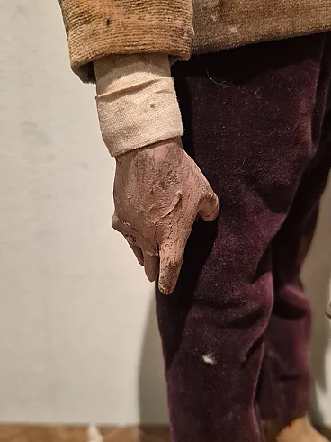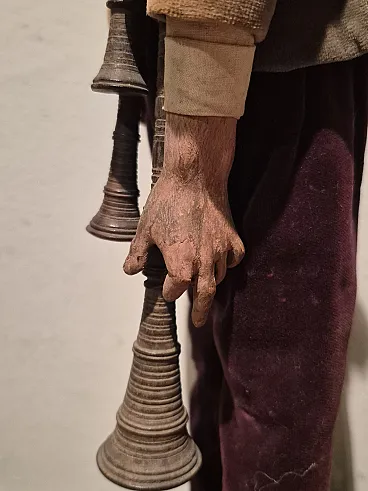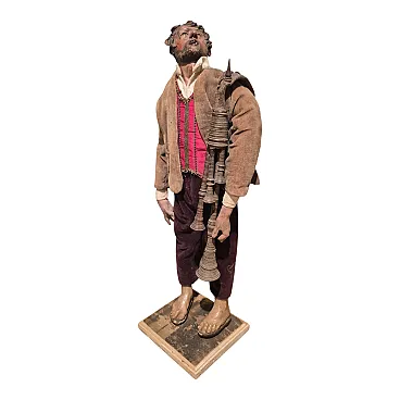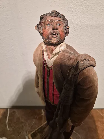 Zampognaro nativity scene statue in terracotta, glass and fabric