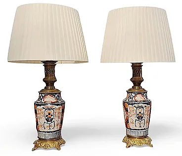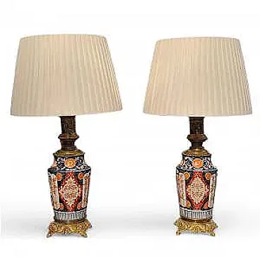 Technical Details: The upper part features a perforated bronze collar that houses the lamp holder. The ivory pleated lampshades (included) diffuse a warm light that enhances the brilliance of the enamels.