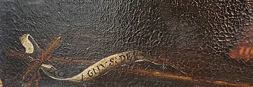 The Cross of reeds: Visible at the bottom left, around which is wrapped a scroll with the legible inscription “ECCE AGNVS DEI” (Behold the Lamb of God).