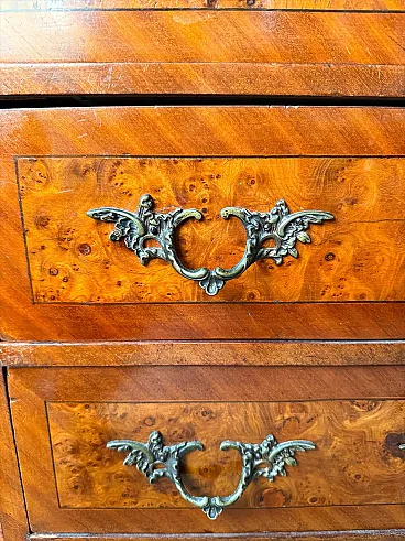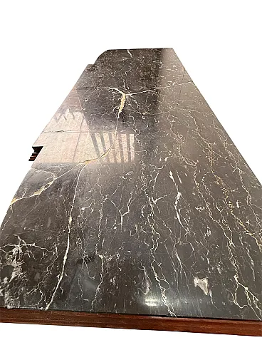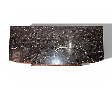 • Materials: Precious veneered wood (such as walnut or burl) and marble top, the latter unfortunately has a crack, although it has been largely repaired with glue and marble filler (ask for info if you wish).