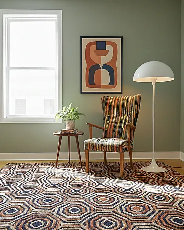 Distinctive Features Danish Design The high backrest slightly curved at the sides offers excellent support and ergonomic comfort. The armrests and legs feature clean, rounded lines that add strength and comfort without weighing down the overall aesthetic. The new fabric covering with bright colors adds a touch of personality and dynamism, contrasting pleasantly with the natural wood, creating a balance between tradition and modernity.