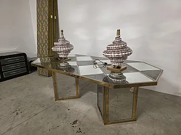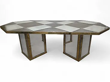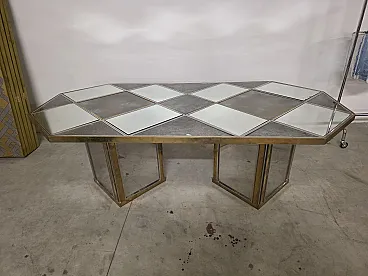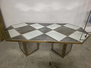 Top triangular, square and rectangular shapes in mirror and satin glass framed by steel and brass.