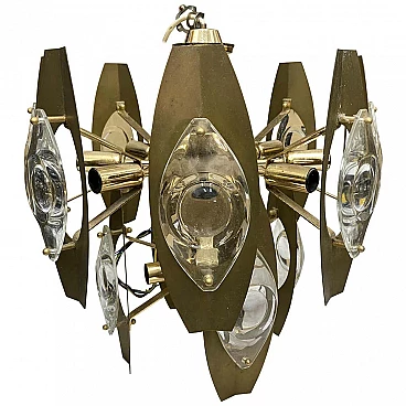 Chandelier in brass and glass by Gaetano Sciolari, 60s