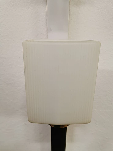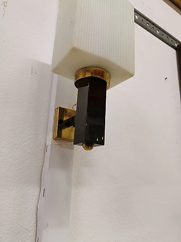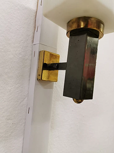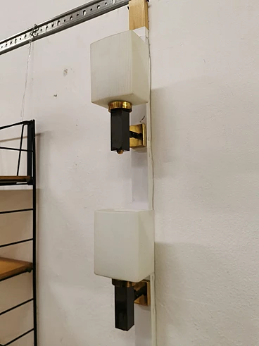 Pair of Stilnovo wall lamps in brass and opaline glass, 60s