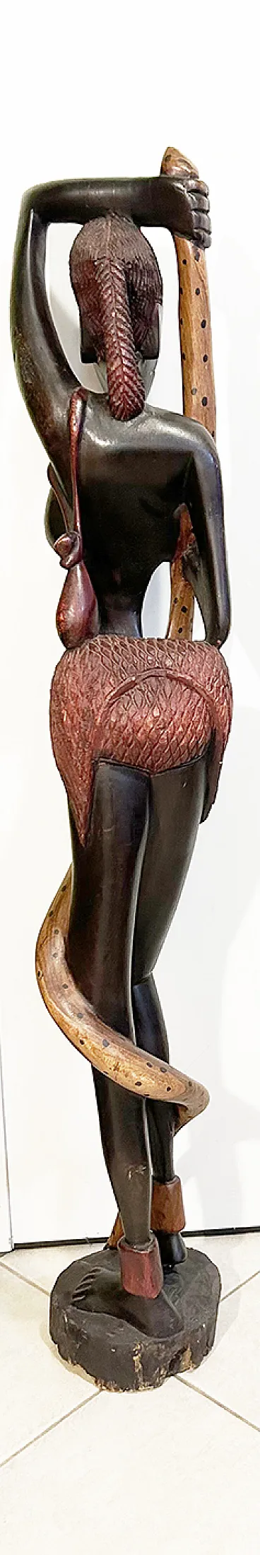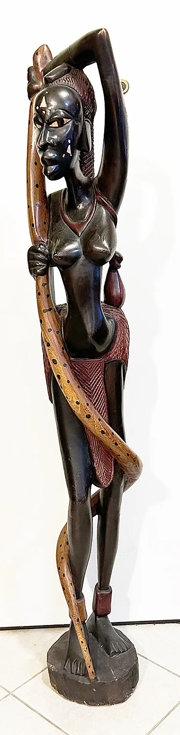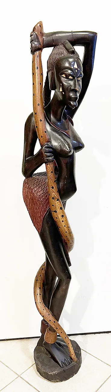Colonial African art (19th-20th centuries) is a hybrid form of expression born during European domination, characterized by wood carvings—especially in Côte d'Ivoire and Ghana—that integrate traditional elements with symbols of colonial power such as uniforms, clocks, helmets, and bicycles. It represents a cultural response to the rapid social, economic and religious changes imposed.