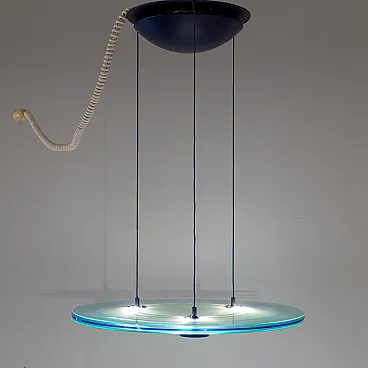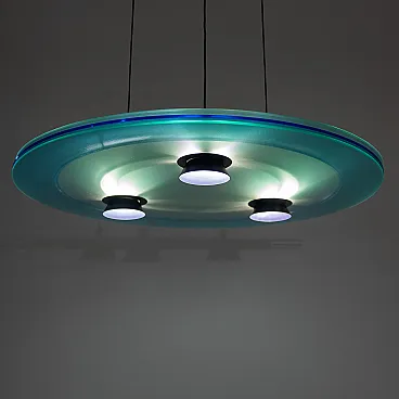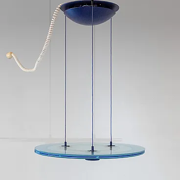 Blue "Aurora" chandelier, Arteluce, Perry King and Santiago Miranda, 1983