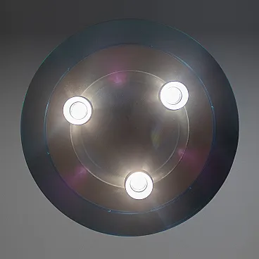 Chandelier with a refined design from the Eighties: "Aurora" model designed by Perry King and Santiago Miranda for Arteluce and which combines technical precision, refinement and stage presence.