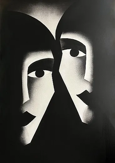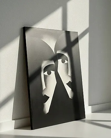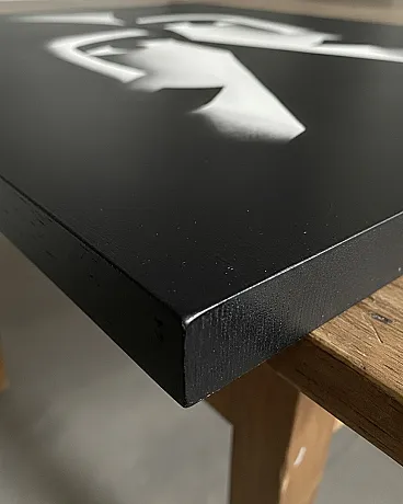 Author's Craftsmanship: The panel is hand painted with a mixed technique (acrylic paint) which creates a matte and material finish. The stark contrast between black and white recalls the avant-garde graphics of the 1930s, making it a timeless piece.
