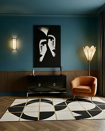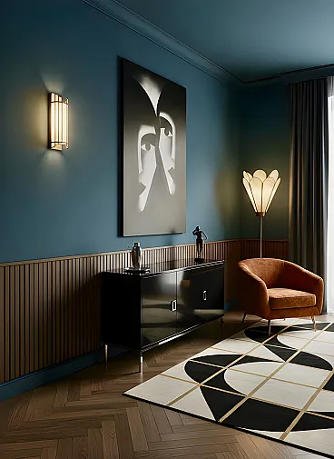 An original work of art that blends the sophisticated aesthetics of Art Déco with the graphic synthesis of Modernism. Made entirely by hand by the La Stanza Inaiuto studio (Alice Tridapali), this work is not a print, but a unique piece capable of giving character and depth to any environment.