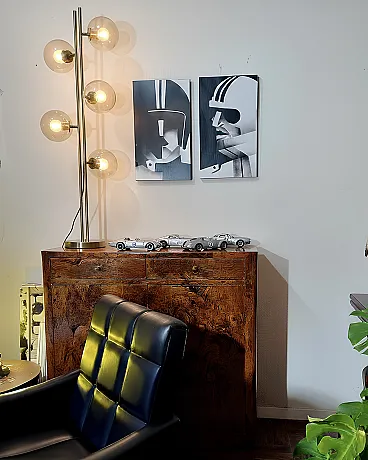 Technique: Acrylic painting technique with protectant. This process focuses on shaded areas with a dotted and vibrant texture that recalls the avant-garde graphics of the 1930s and enhances the geometric contrasts of volumes, lights and shadows.