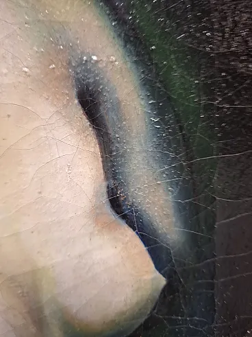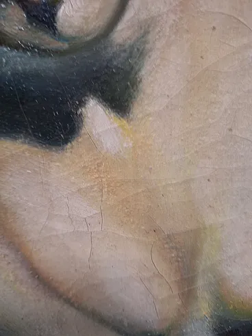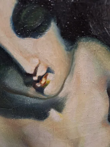 Oil on deco canvas depicting a woman with a carved and gilded frame