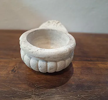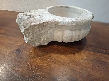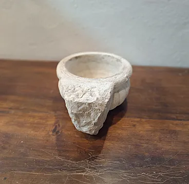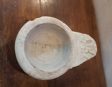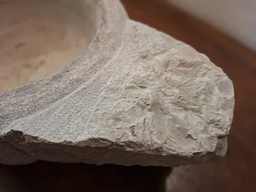 The stone shows clear signs of age, with erosion and a patina due to age and use