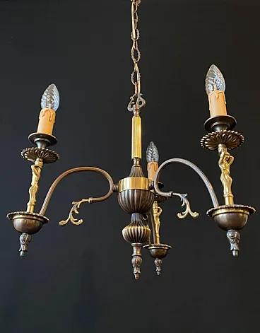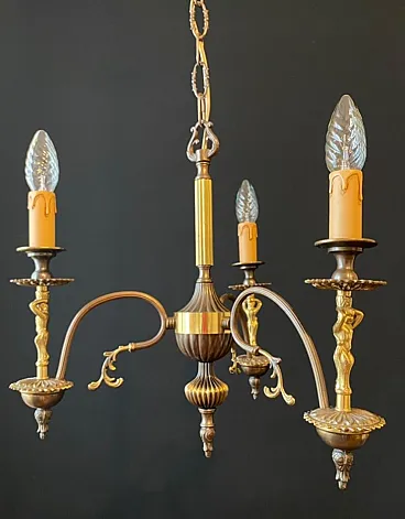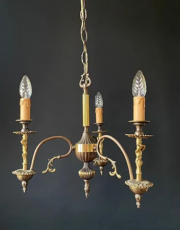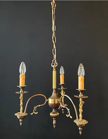 Chandelier with three light points. In working condition. Sockets and wiring replaced with new ones. Bulb type E14. Suitable for 220V or 110V electrical system.