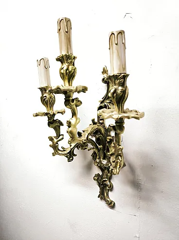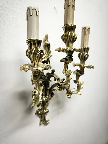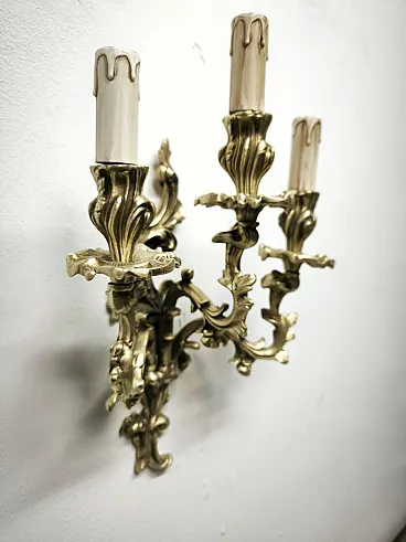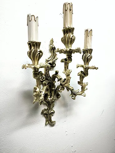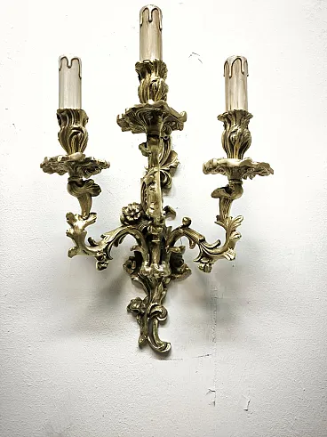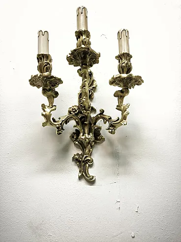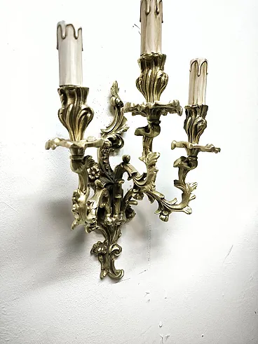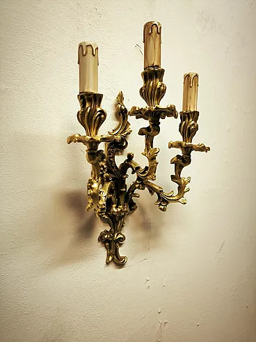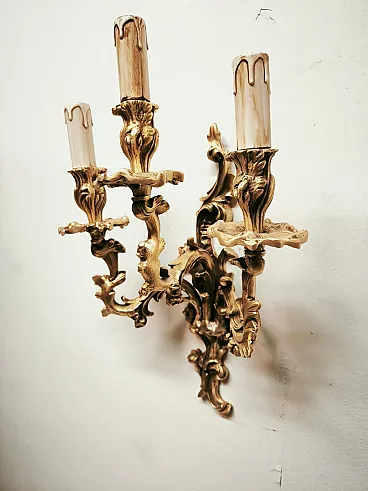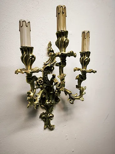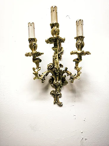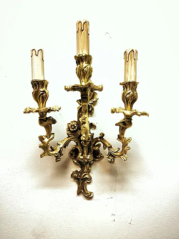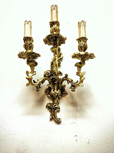 Three-light bronze wall lamp, 19th century