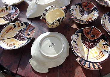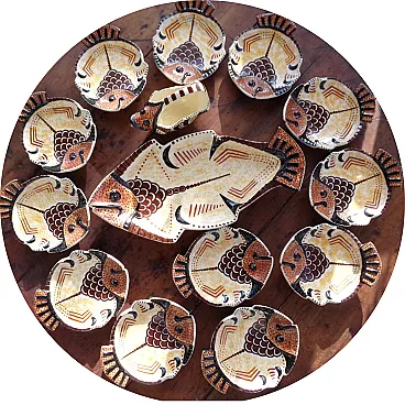 French Mid-Century Earthenware Barbotine Fish Dinner set, 50s