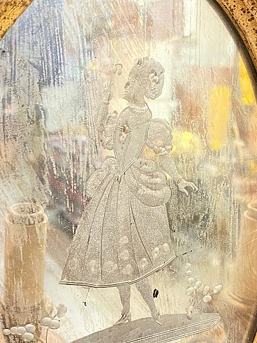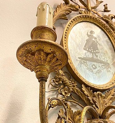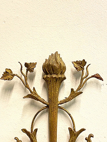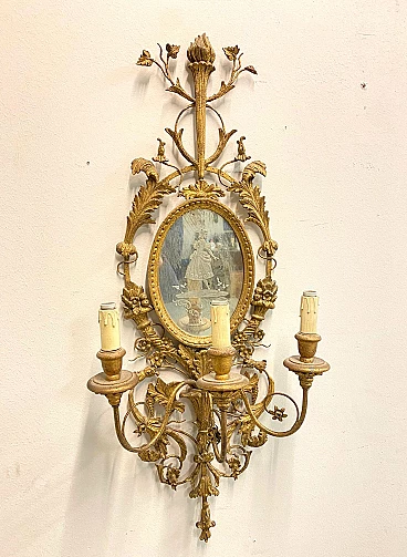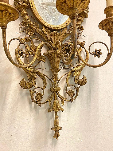 Wall sconce with 3 lights in wood and gilded iron with mirror, 50s