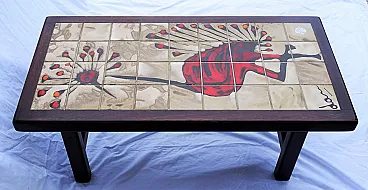 Coffee table with Gray Crowned Crane Motif signed Dan, 50s